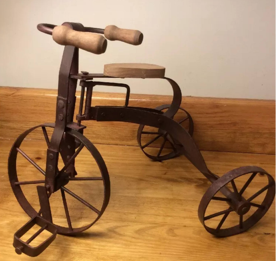 Sure, this is a lovely Tricycle for a doll collector or corner conversation piece. But, my creative eye sees it as a planter. Almost anything around the house can be turned into a planter. I have done it! Typewriters, bicycles, tricycles, cowboy boots, paint cans, wagons, tool boxes, and mailboxes ! I have even used closet door shoe holders