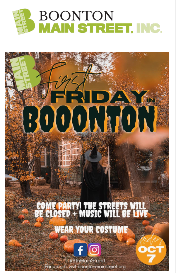 Bring your daft disguise this Friday, October 7th to @BoontonMainStreet ! For a Spooktacular Fun Friday!
