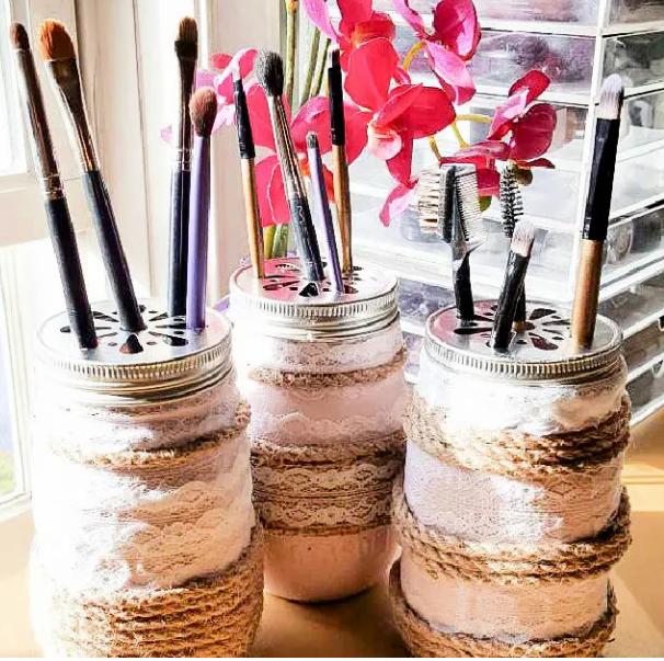 - Decorate jars with ribbon, burlap, jute and or paint to hold art supplies, pencils, pens and more!