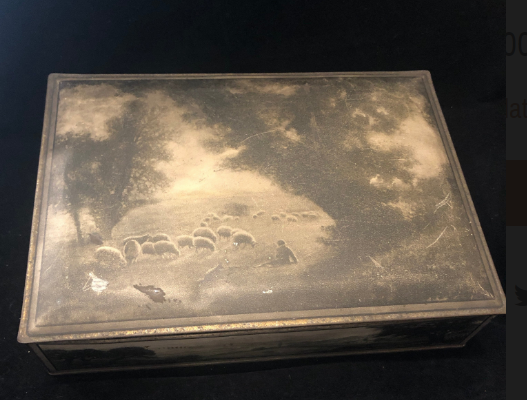 The National Biscuit Company launched a million dollar advertising campaign around the Uneeda Biscuit crackers. The campaign created a rich, sought after array of collectibles that include images of a sweet boy in a yellow slicker and hat bringing home some biscuits to eat with some warming soup on a stormy day; as well as, painted tins that were saved and repurposed. This Uneeda Shepherd Biscuit tin is one of these desired collectables and is available at Times Tin Cup!