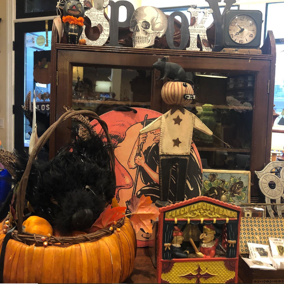 Welcome foolish mortals! Halloween has arrived @ Times Tin Cup ! What better place to shroud your homes with depth disguise and steampunk decor to welcome grim grinning ghosts than an antique shop?