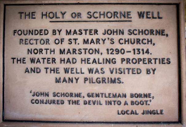Sir John Schorne was revered as a saint (although he was never officially canonized by the Pope) by striking his staff to the ground and conjuring the devil into a boot. The shrine of Sir Schorne’s death at Chertsey Abbey is the third most popular pilgrimages of his cult followers.