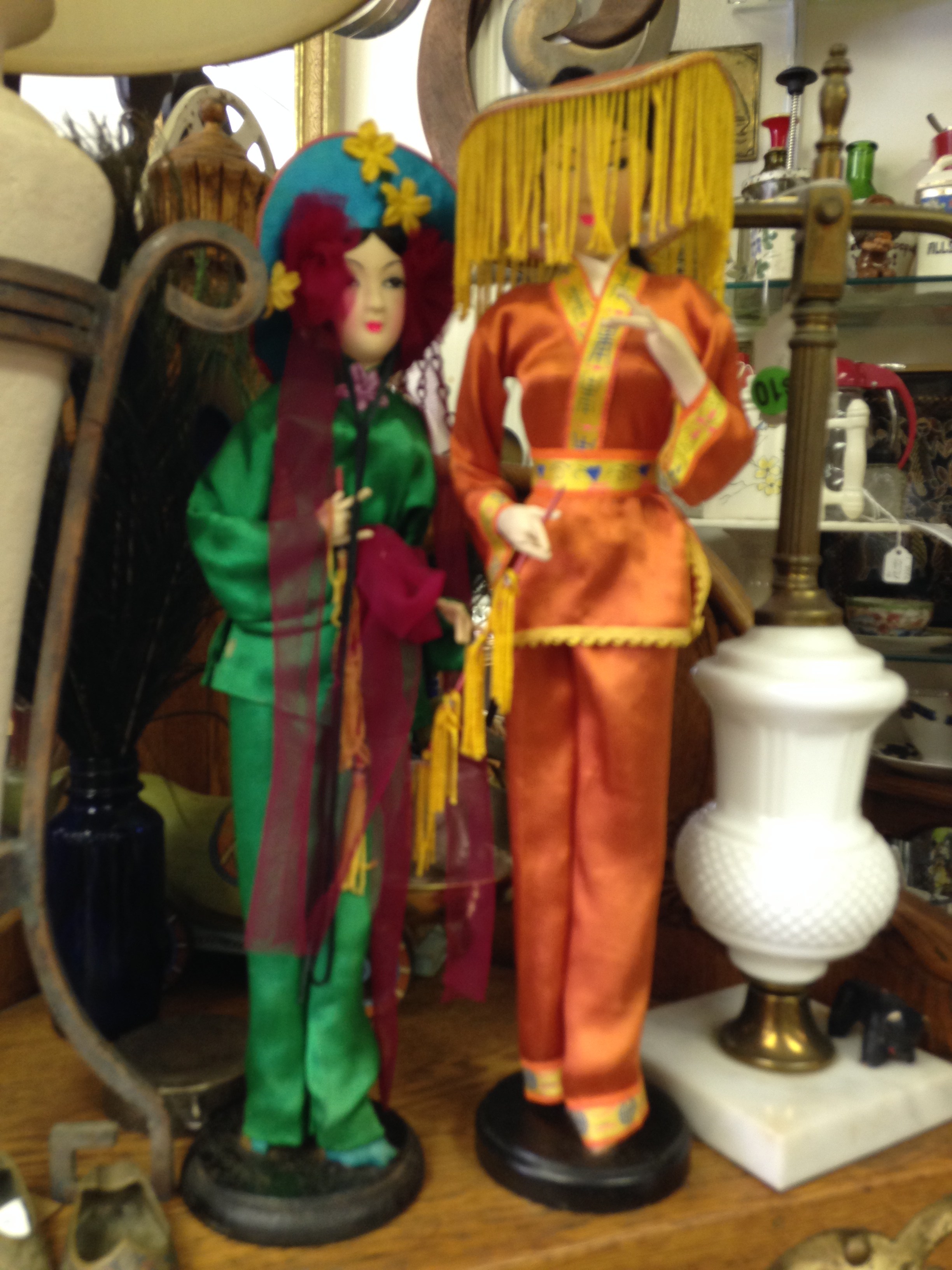 International Dolls, Demi-lune mahogany chest, milkglass and more!