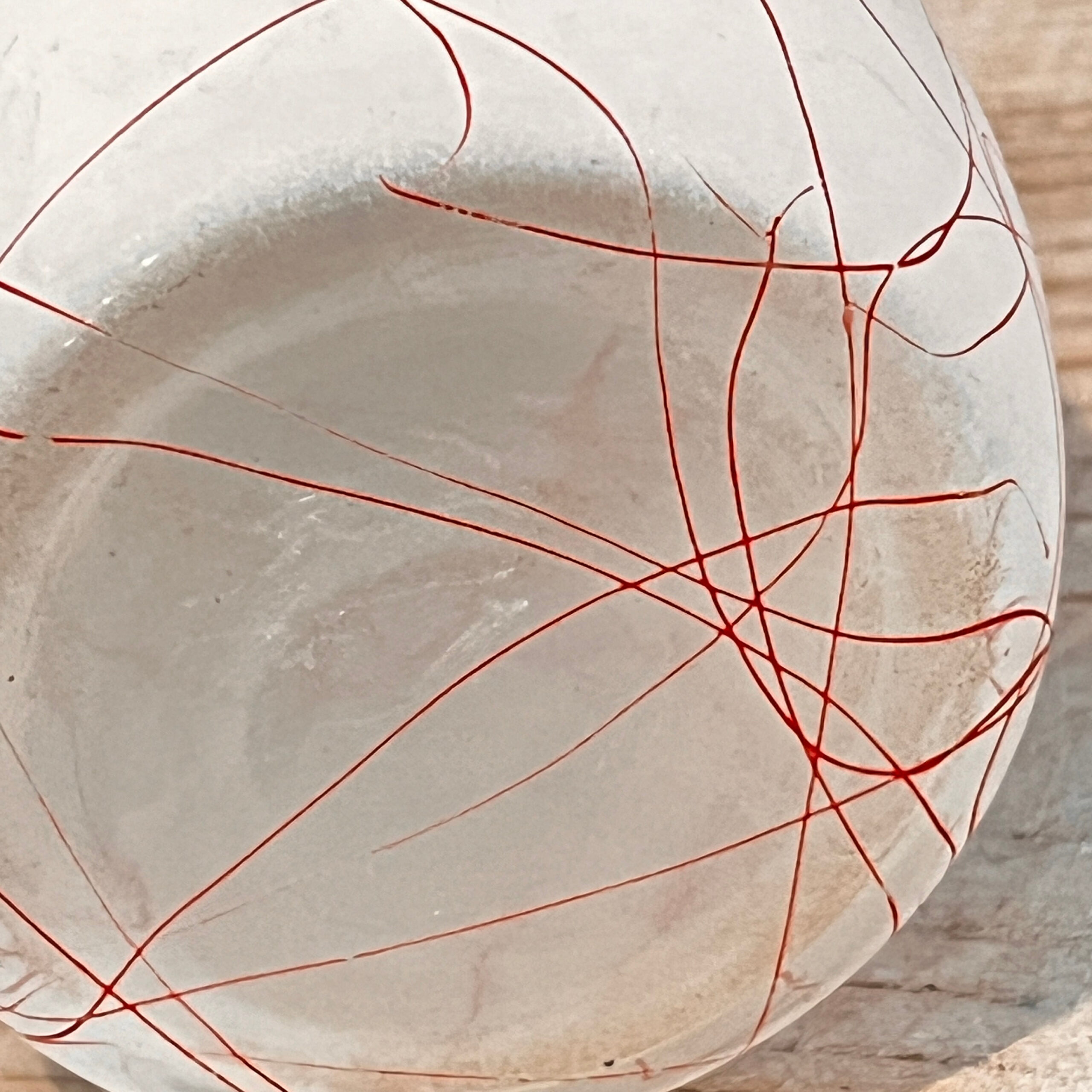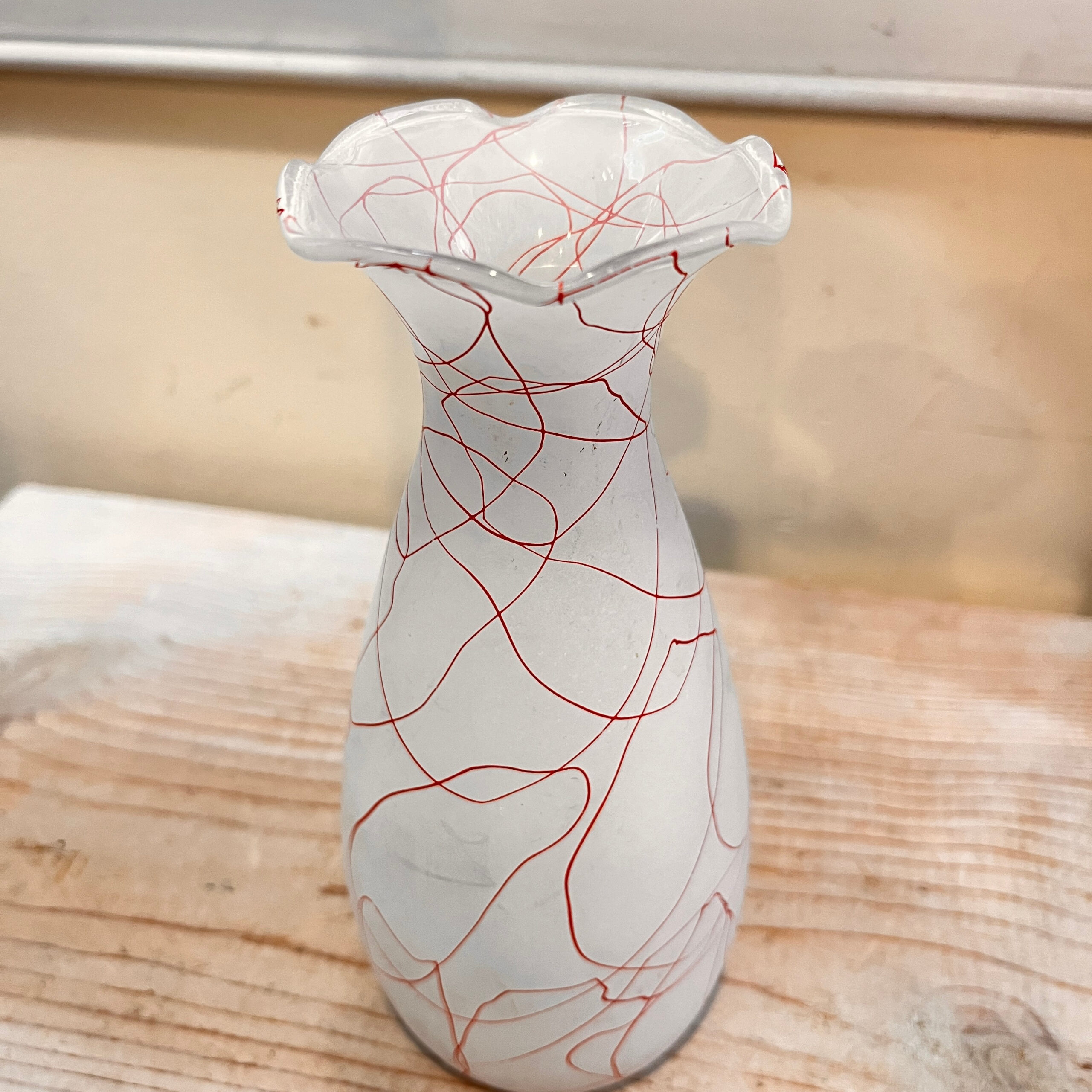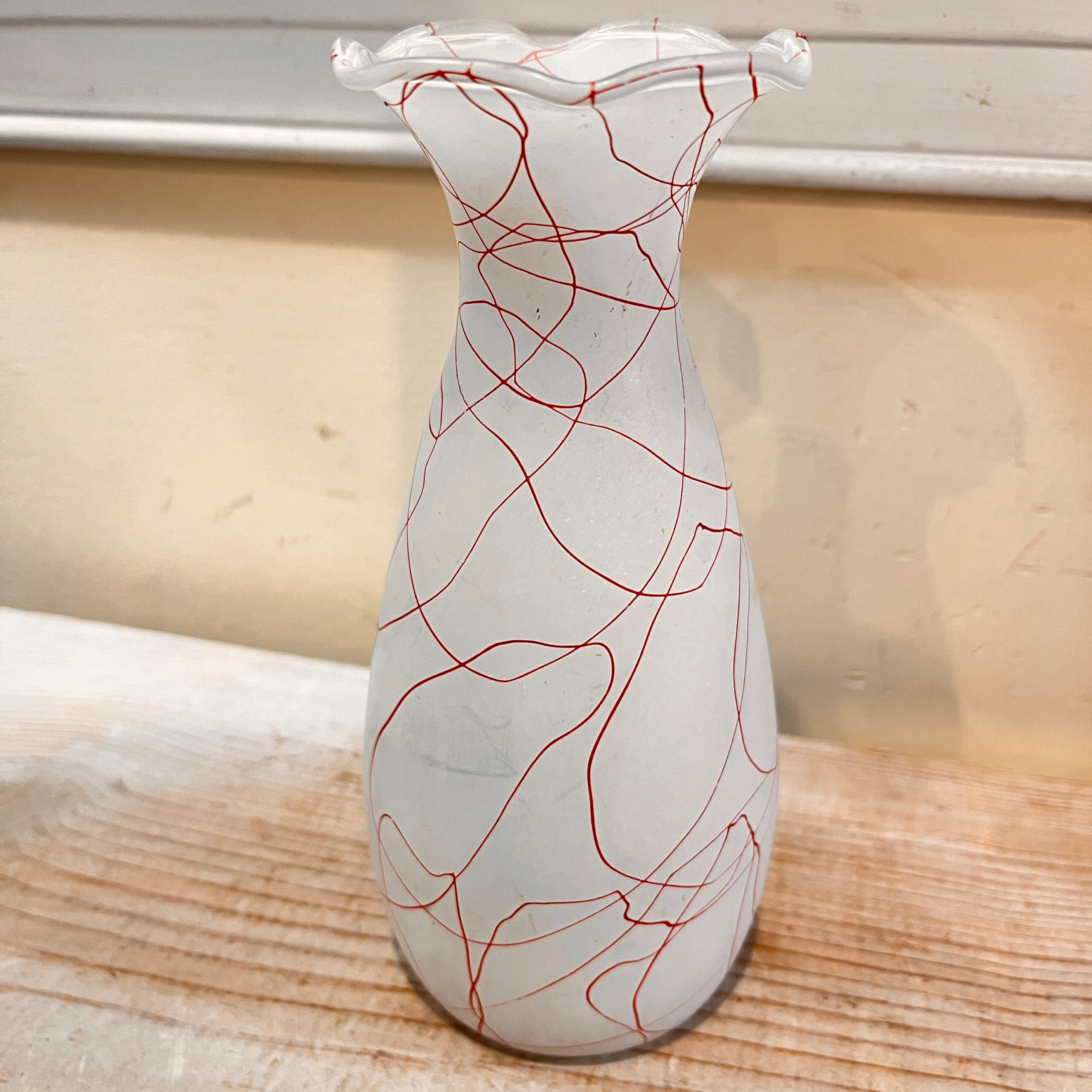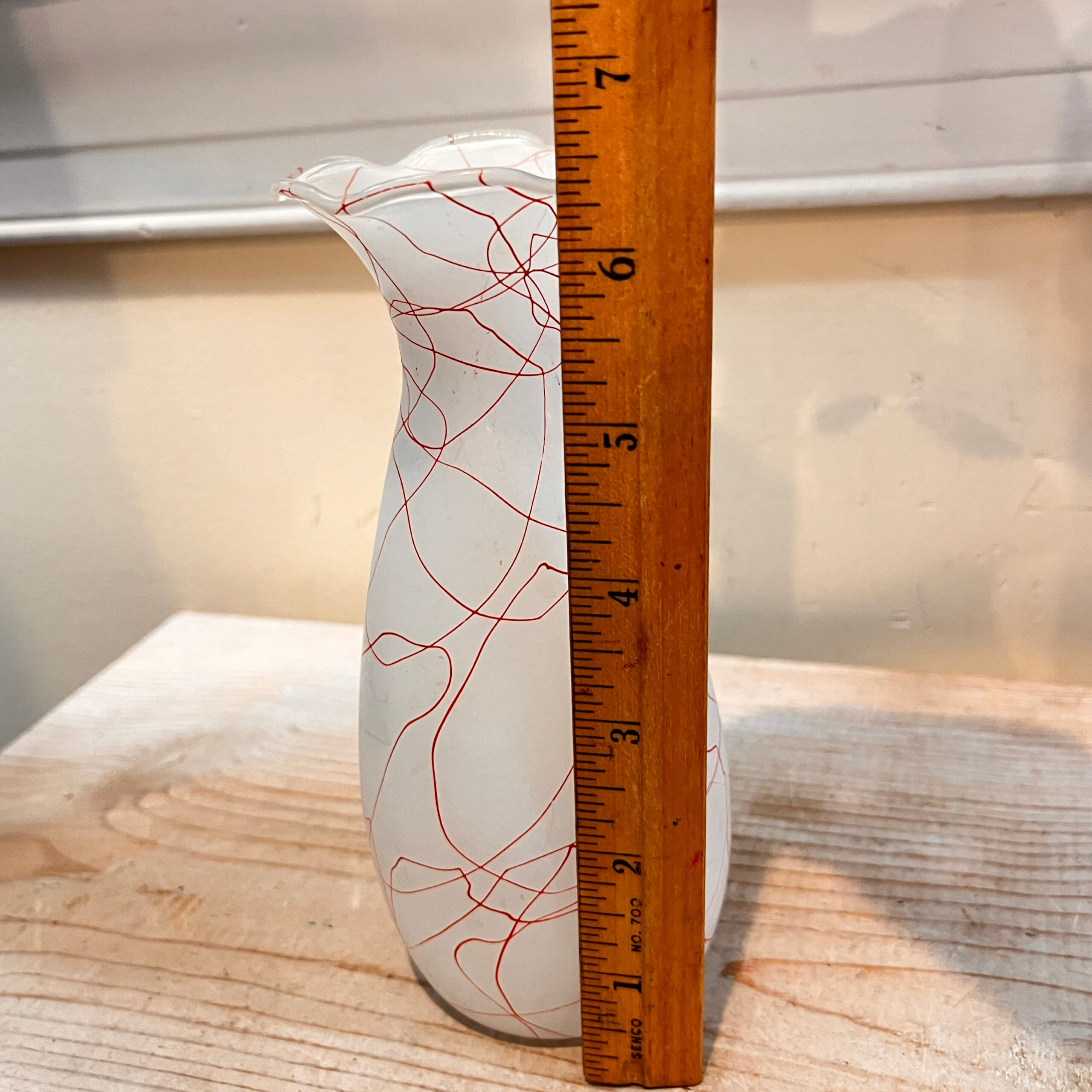 Hazel Atlas mid-century modern White Frosted Spaghetti Vase. Approx. 6-1/4″ tall. In wonderful vingage condition