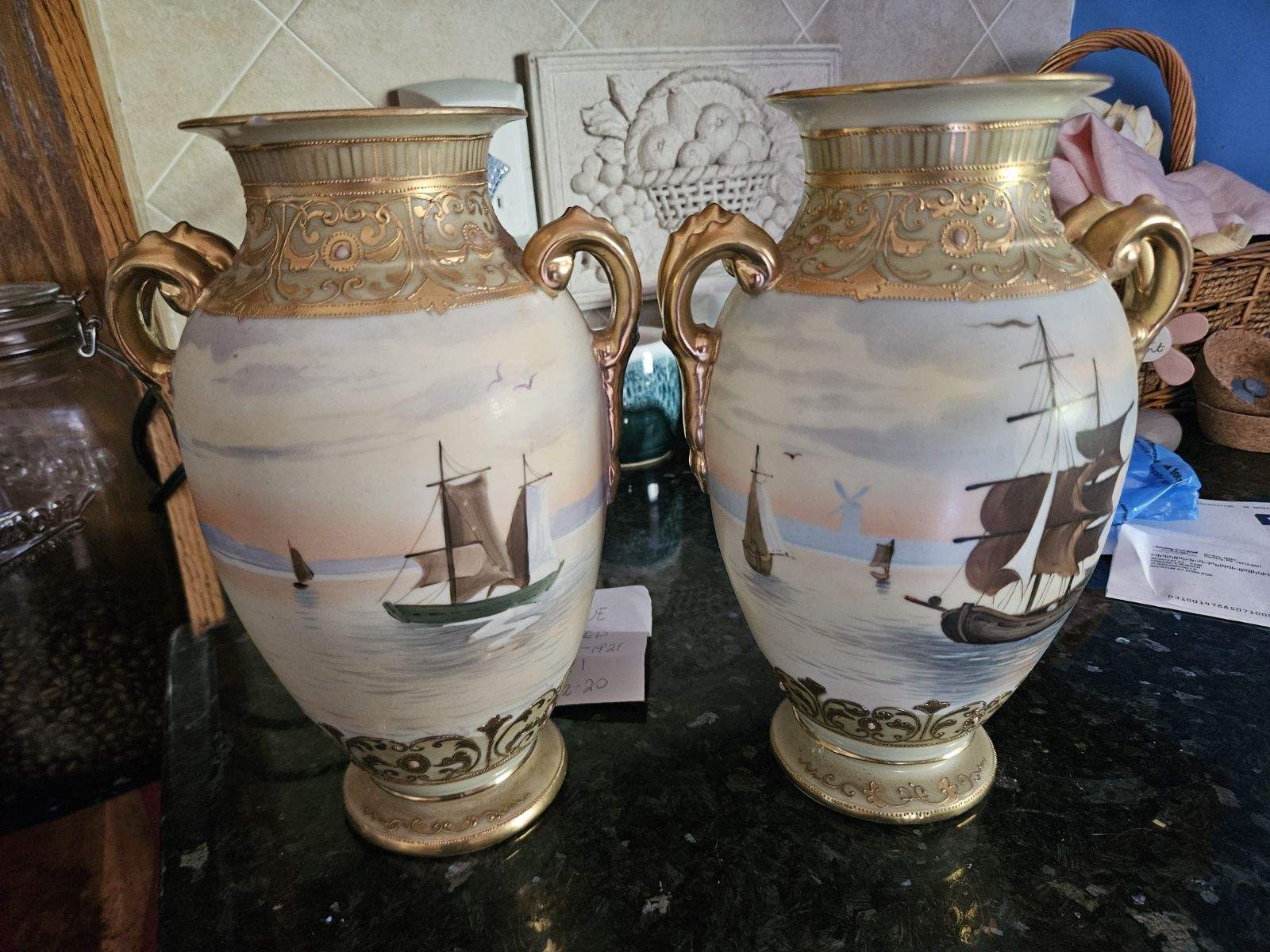 Be the first to review “Pair of Nippon Vases with Sailboats”