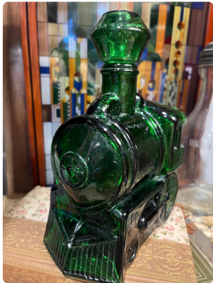TimesTinCup.com carries a wide variety of Train Themed Items for the Train Enthusiast! This Green Glass Train Decanter is featured at Time’s Tin Cup’s Etsy Shop! #Railfans
