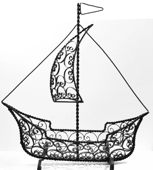 This unique Metal Ship Piece offers an opportunity to mimic a famous ship legend. Potting a creeping moss plant in the boat basket will create the illusion of the Wreck of 10 Sails !