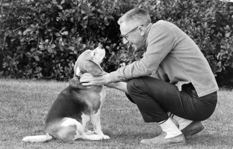 Charles Schulz with his dog Spike. Hat Tip, Schulz Museum