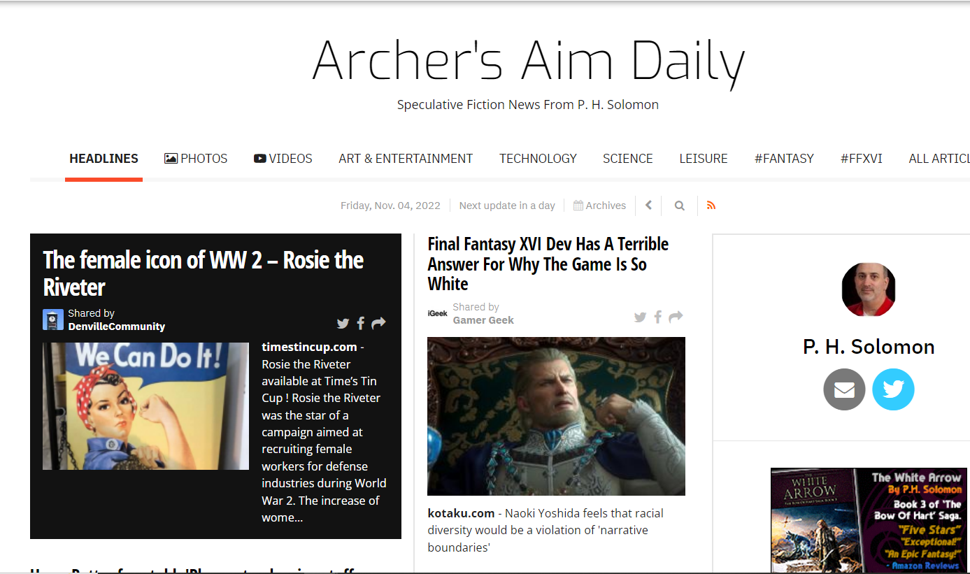 but, Time’s Tin Cup is now being carried by Archer’s Aim Daily News Feed, run by Bestselling Author P. H. Solomon