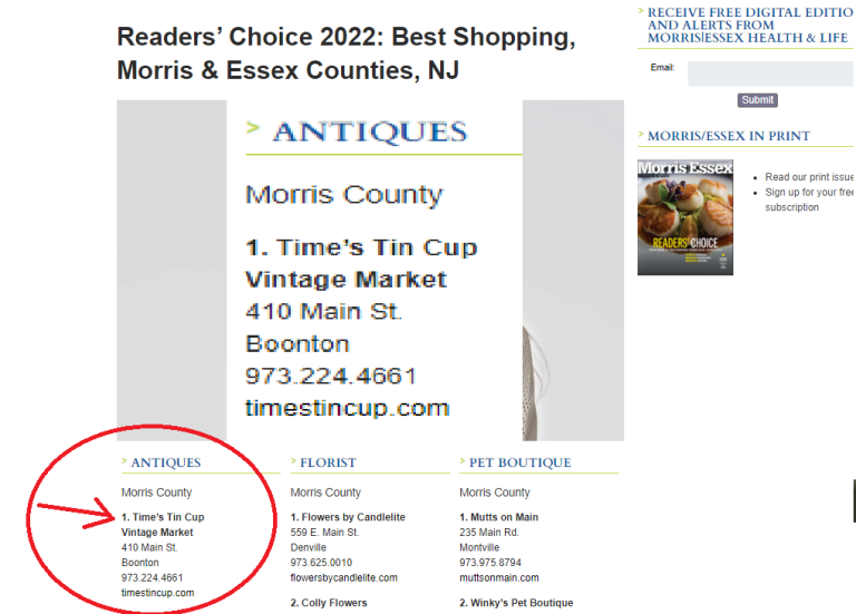Not only is Time’s Tin Cup #1 Shopping with Morris Essex Read Readers Choice 2022;