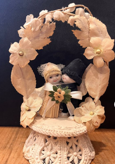 The tradition of cake toppers has a long history; but evolved to being a symbol of the bride and groom only within the past 100 years. The representation of the bride and groom was designed by a baker for his own daughter’s wedding. The topper is said to be the perfect symbol of a bride and groom’s love and unity.