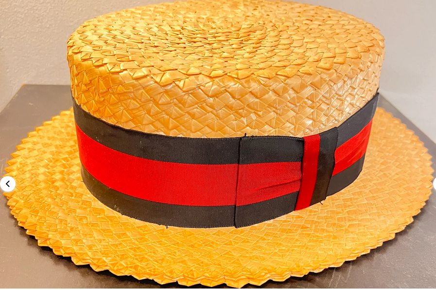 The Straw Boat Hat; also known as, a Sennet Hat was used by the British Royal Navy during the summer months. The straw hats provided some relief to winds and water on long voyages. Many gondoliers still wear versions of these straw boat hats.