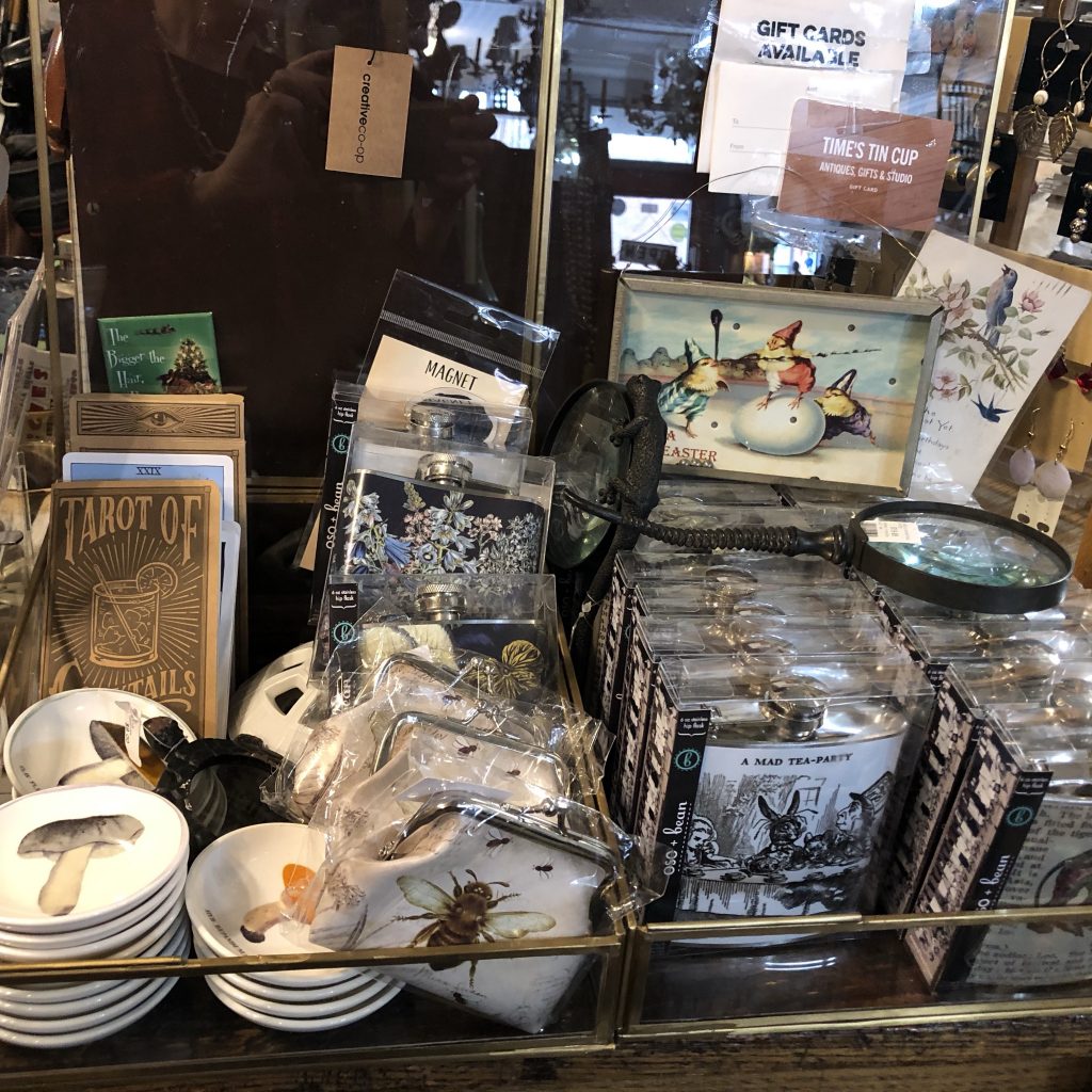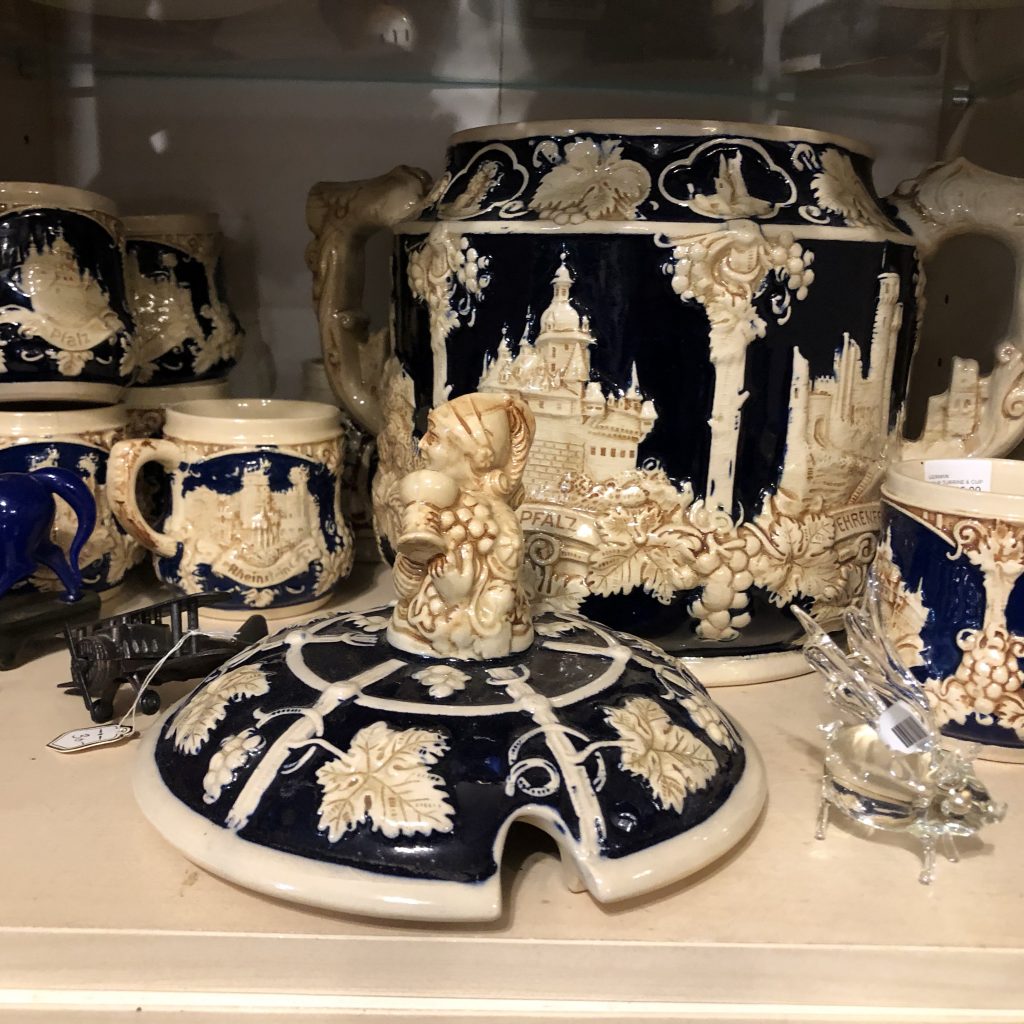 Bavarian Tureen with cup Terrific little gift items fantasy flasks, Buddha boxes, purses and more.Fun, classic and hard to fun LPsSoooo many cool and esoteric booksFenton Fantastic collection of dug bottlesDepression glass and a great selection of uranium glass